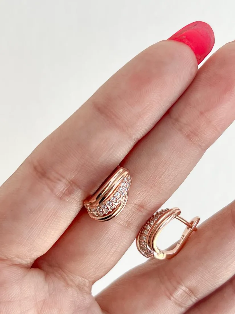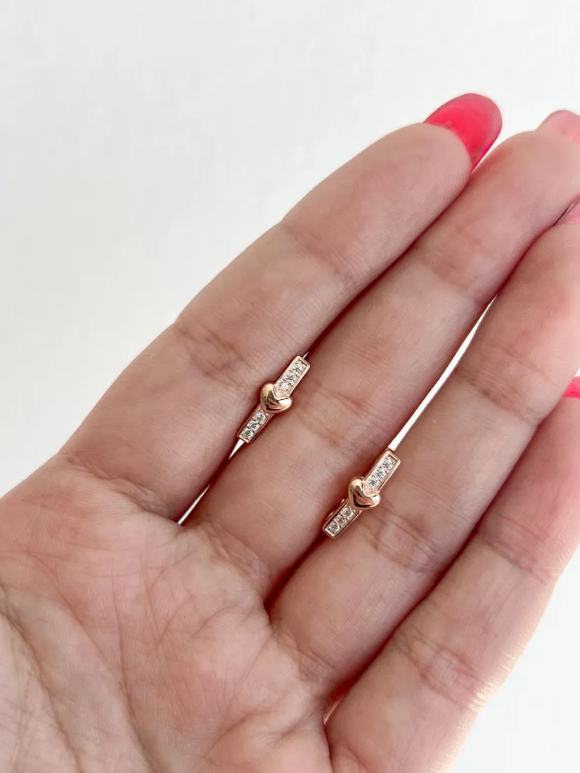 HUGGIES C/ZIRCON Y DIJE CORAZON PLATA 925 ROSE MED10MM