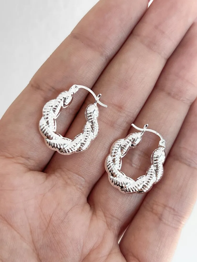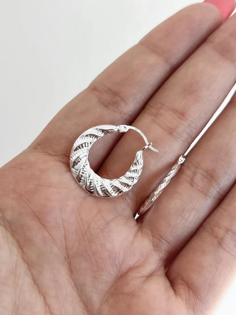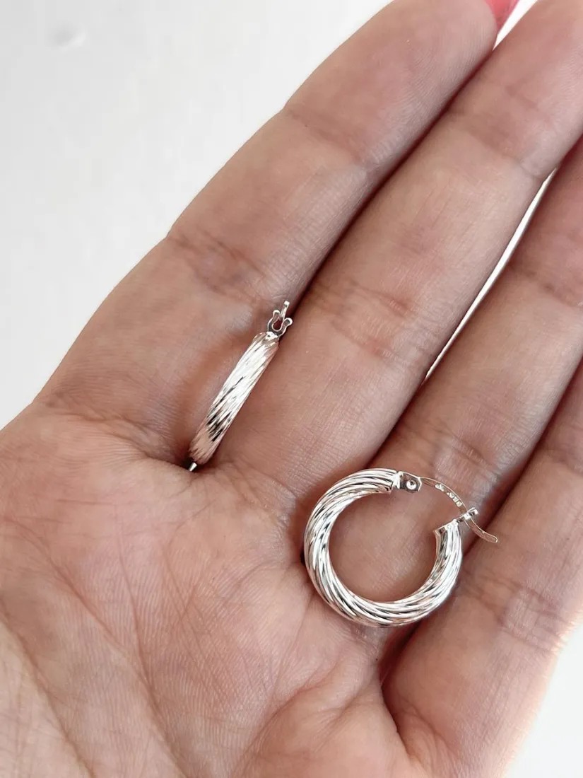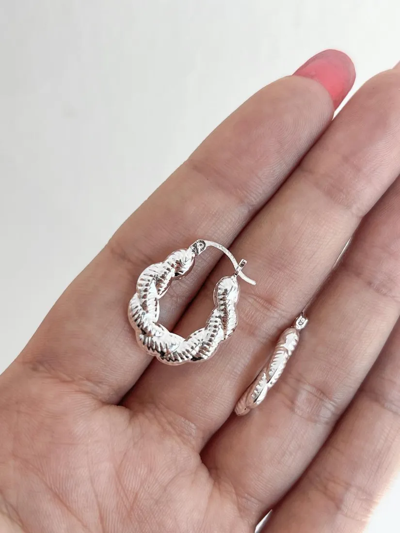 AROS ARGOLLA TORSADA INFLADA PLATA 925 CIERRE ITALIANO MED 18MM