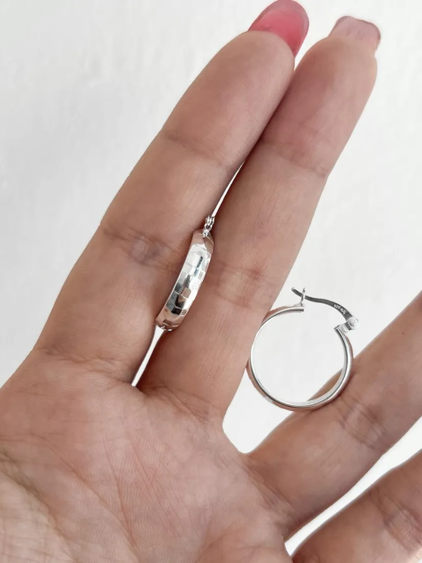 AROS ARGOLLA FACETADA CUBOS PLATA 925 C/CIERRE ITALIANO MED 20MM