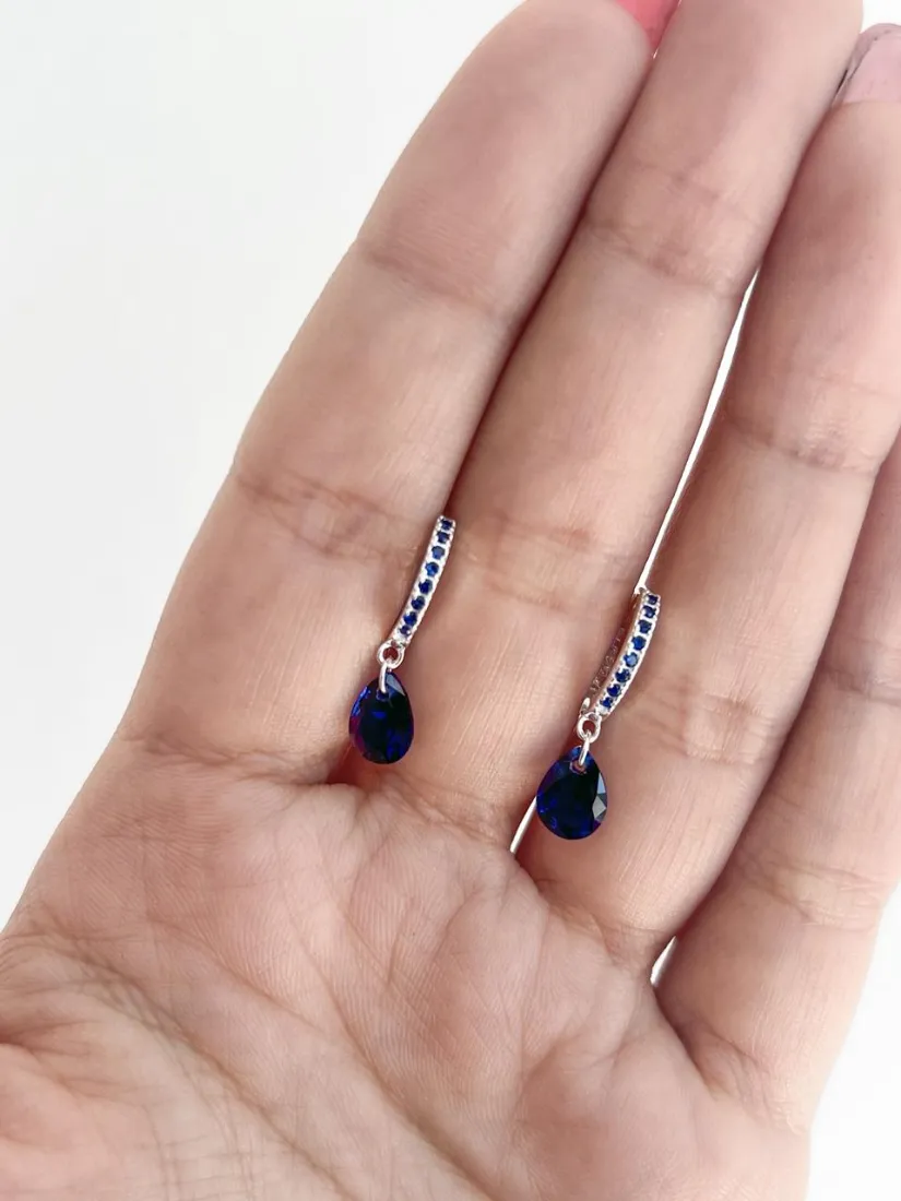 CUBANITOS C/DIJE GOTA AZUL PLATA 925 MED 12MM