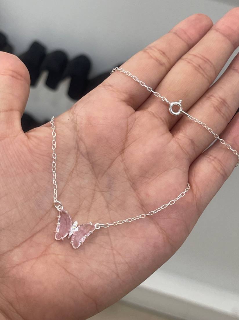 CHOKER MARIPOSA ROSA PLATA 925