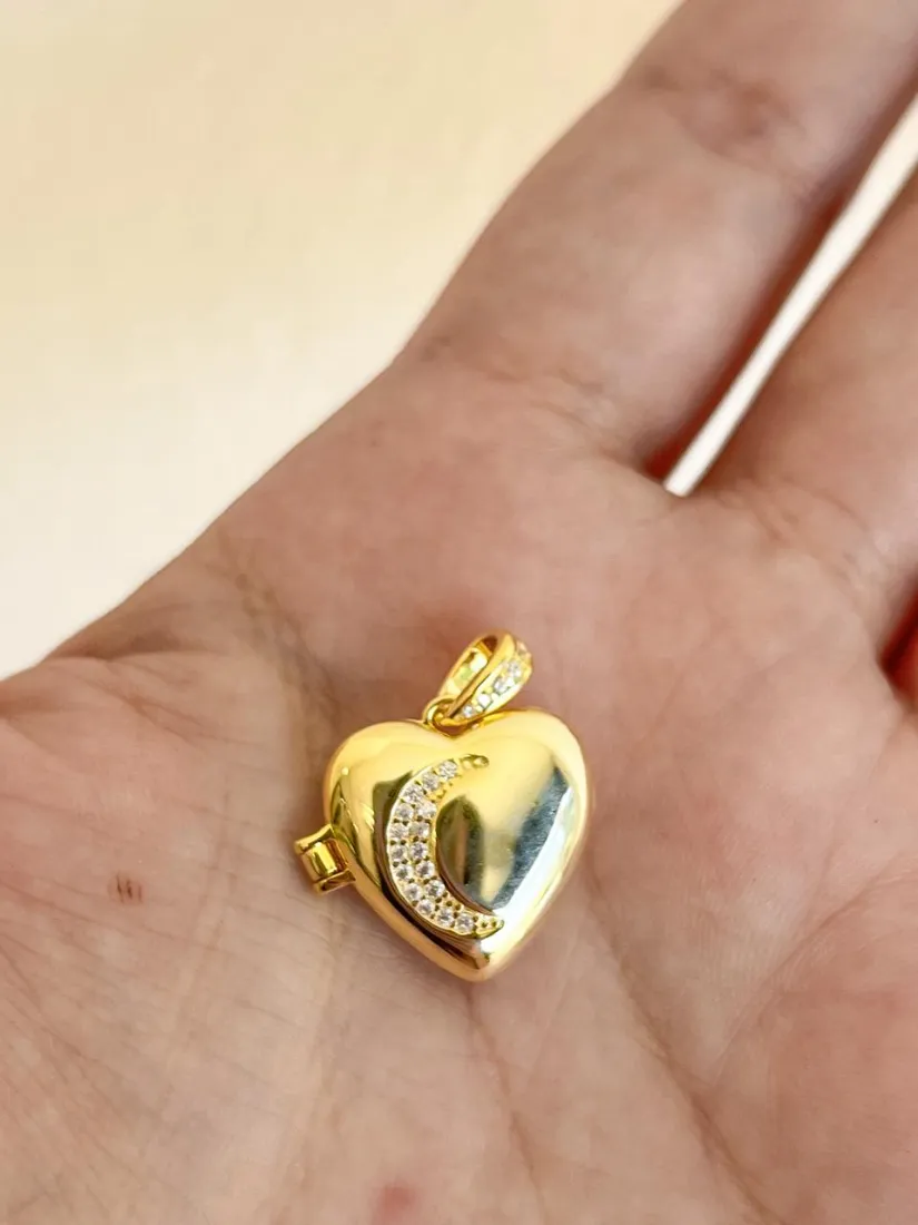 DIJE RELICARIO CORAZON C/MEDIA LUNA PLATA 925 GOLD