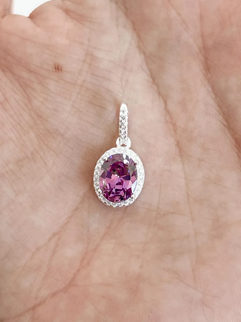 DIJE OVAL ZIRCON LILA AMATISTA PLATA 925 ITALY MED 9MM X10MM