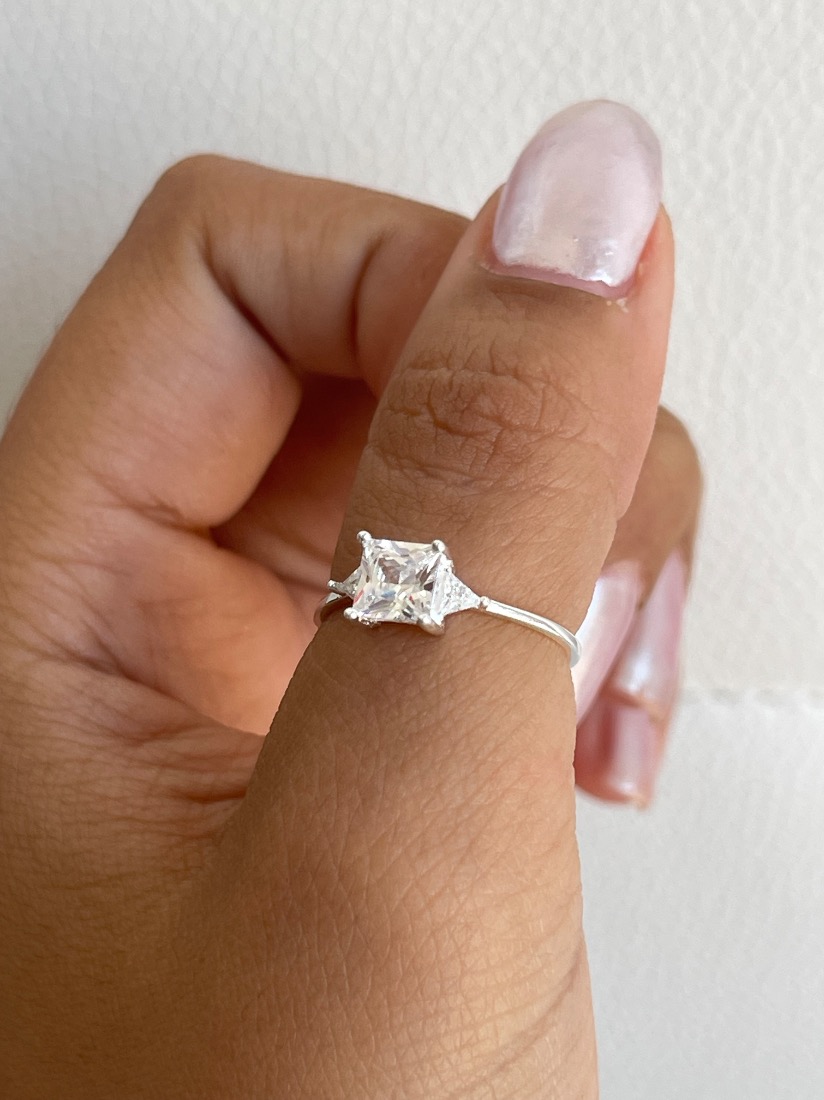 ANILLO CINTILLO C/ZIRCON CUADRADO 4GRIFAS PLATA 925 MED 15/16/17/18/19