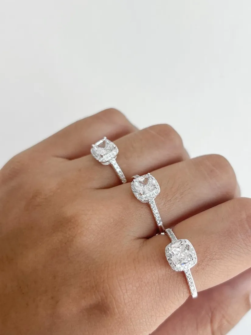 ANILLO DE COMPROMISI CUADRADO C/ZIRCON BLANCOI Y MICROPAVE PLATA 925