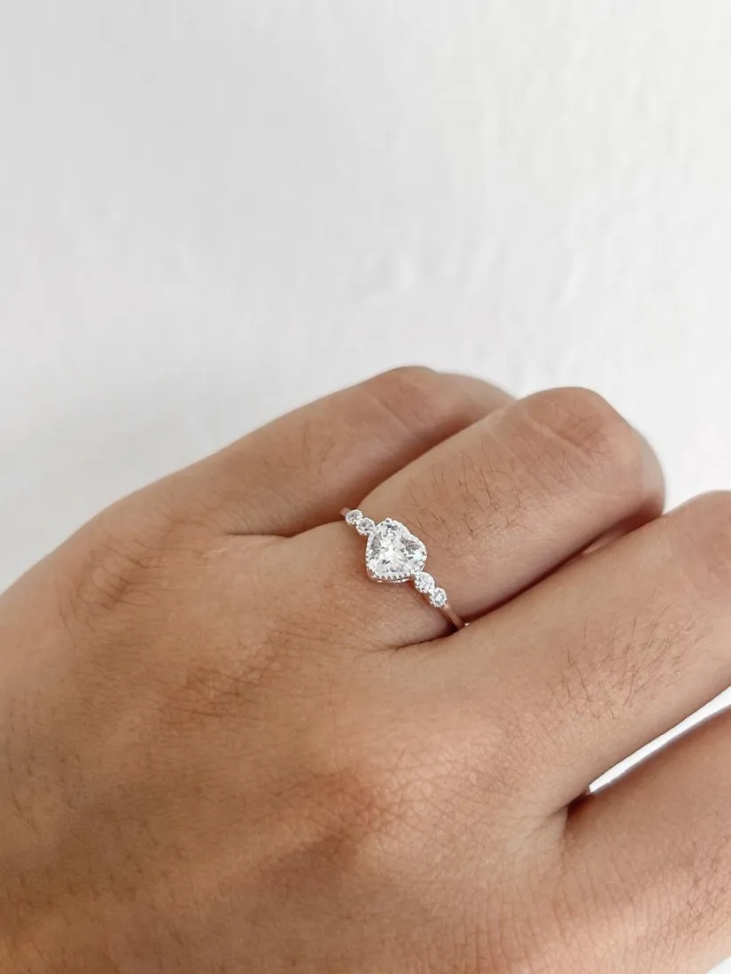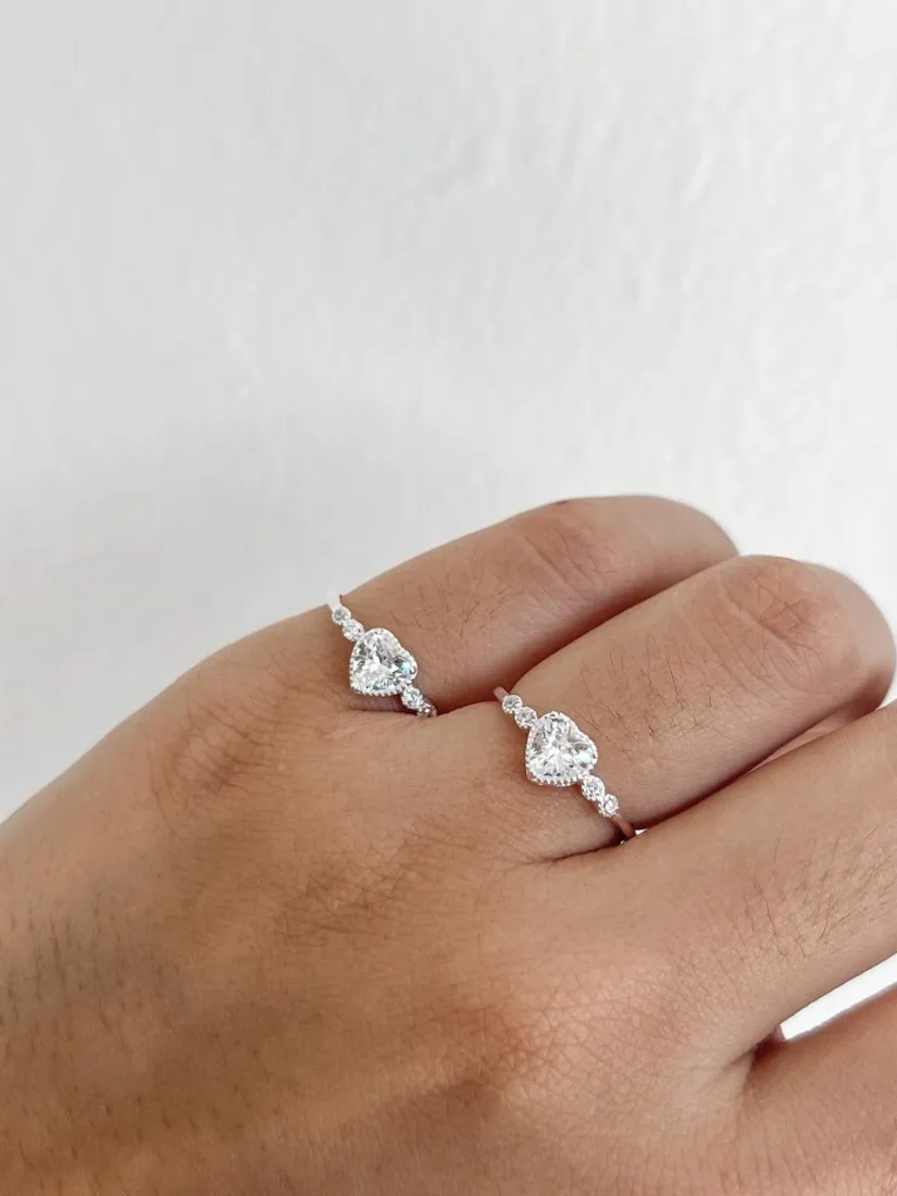 ANILLO DE COMPROMISO CORAZON C/ 4 PUNTOS DE LUZ PLATA 925