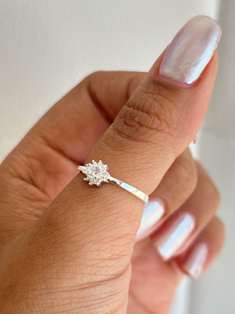 ANILLO FLOR C/ZIRCON Y MICROPAVE PLATA 925 MED 15/17/18/19