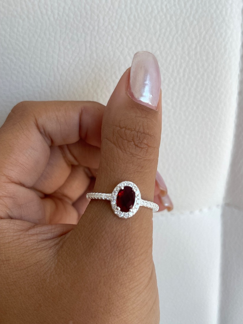 ANILLO OVAL ROJO C/ZIRCON Y MICROPAVE PLATA 925 MED 17/18/19