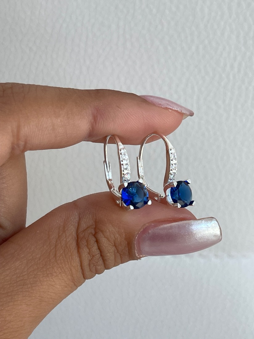 AROS BRISURA C/ZIRCON AZUL Y MICROPAVE PLATA 925
