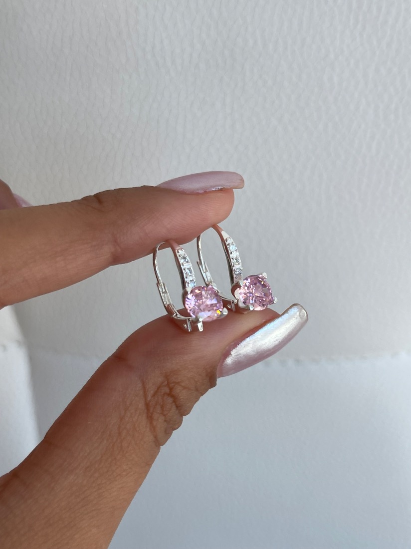 AROS BRISURA C/ZIRCON ROSA Y MICROPAVE PLATA 925