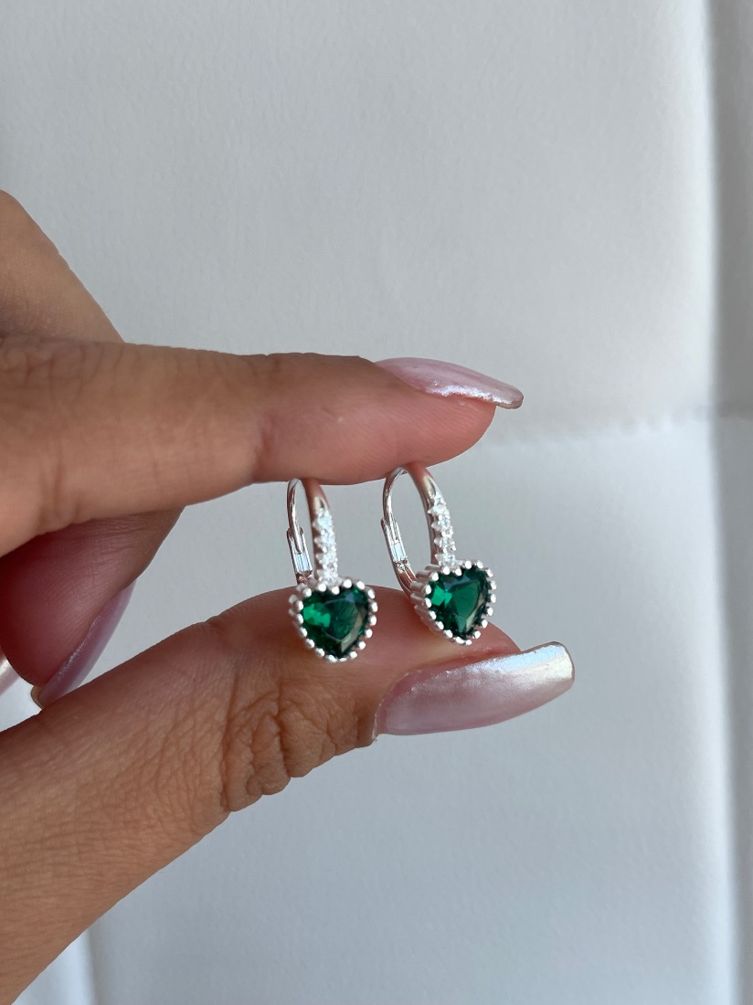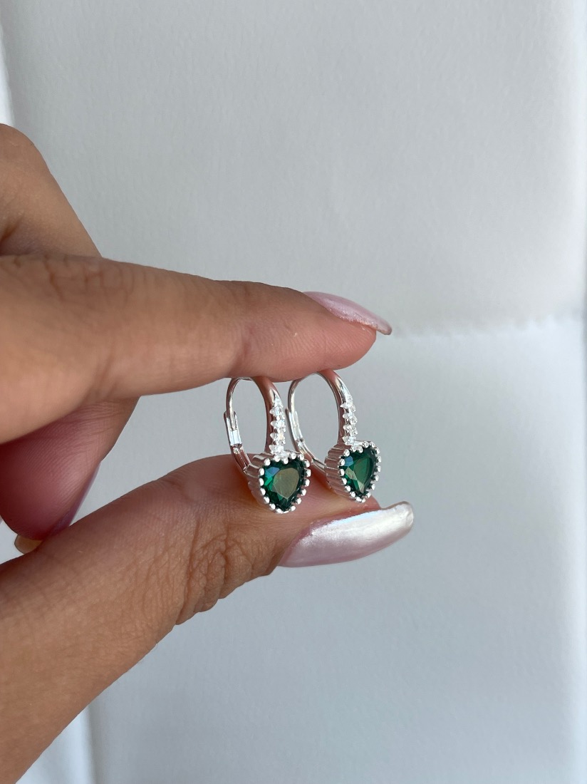 AROS BRISURA CORAZON VERDE C/MICROPAVE PLATA 925 7MM
