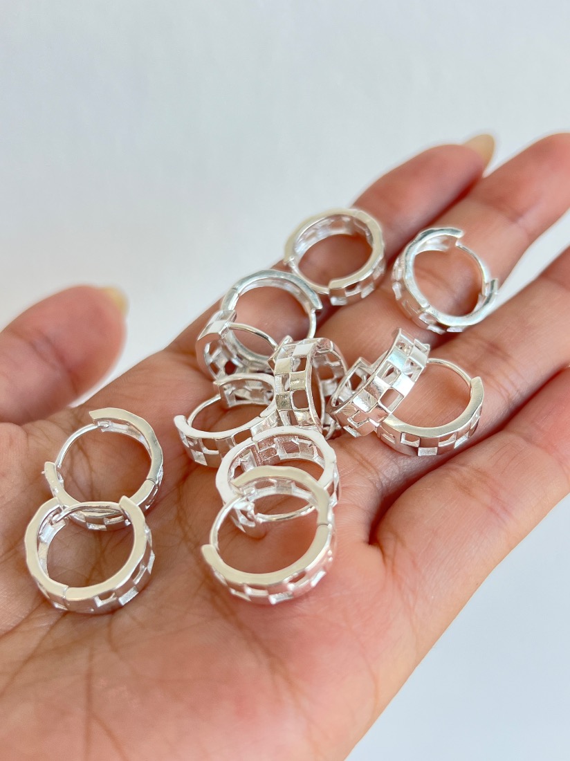 AROS HUGGIES CALADO CUBOS PLATA 925