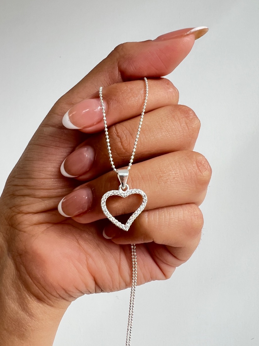 CONJUNTO MICROBOLITA C/DIJE CORAZON C/MICROPAVE PLATA 925