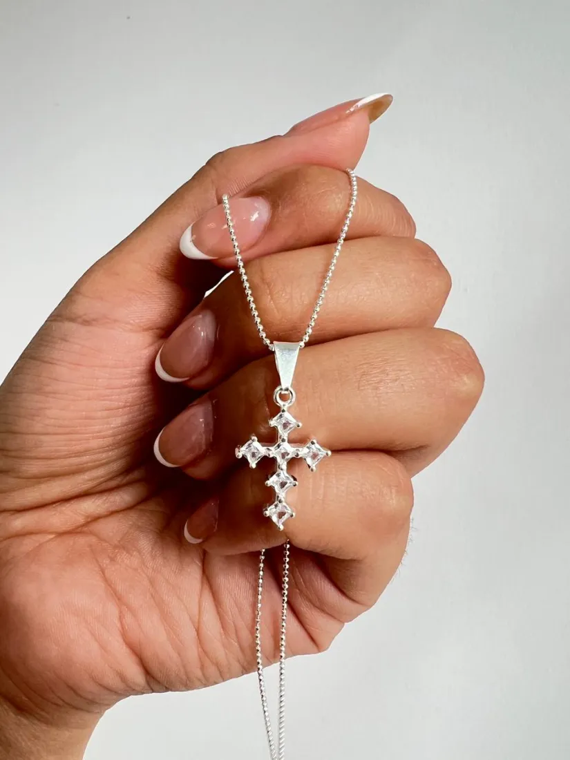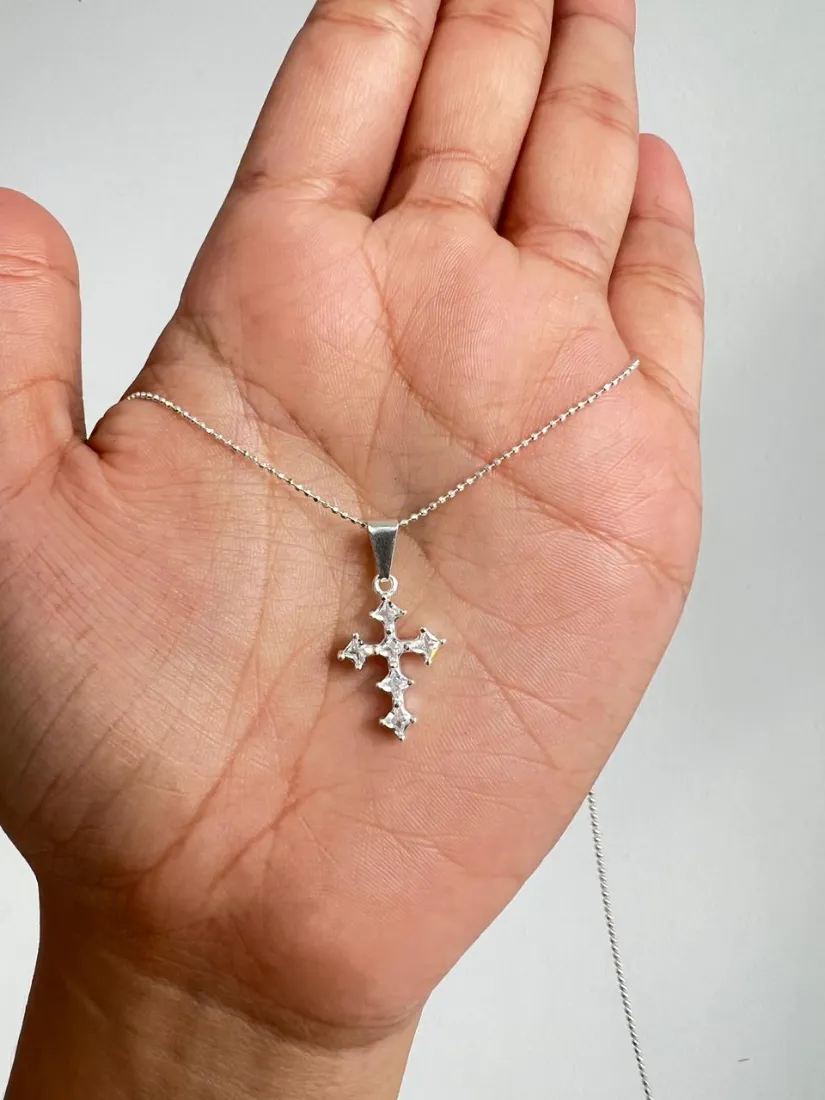 CONJUNTO MICROBOLITA C/DIJE CRUZ C/ZIRCON PLATA 925
