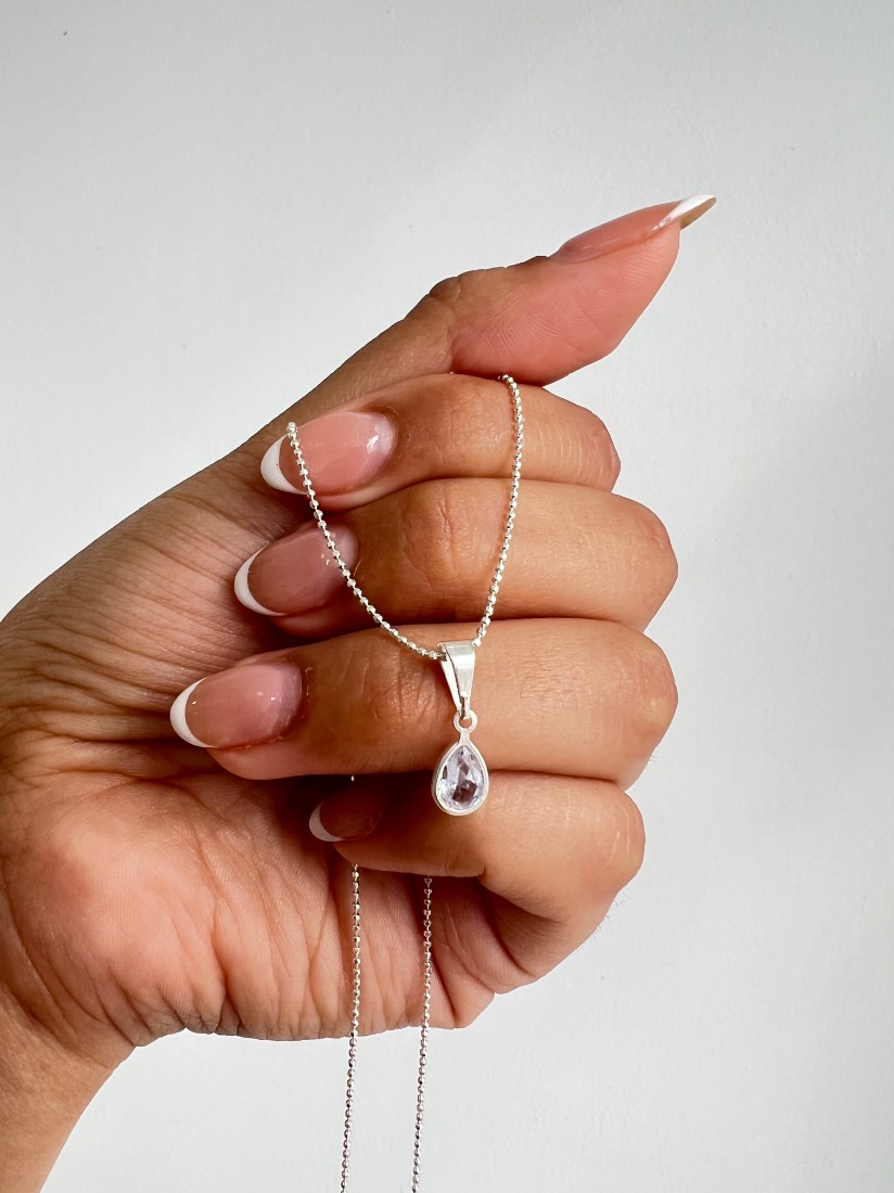 CONJUNTO MICROBOLITA C/DIJE GOTA C/ZIRCON PLATA 925