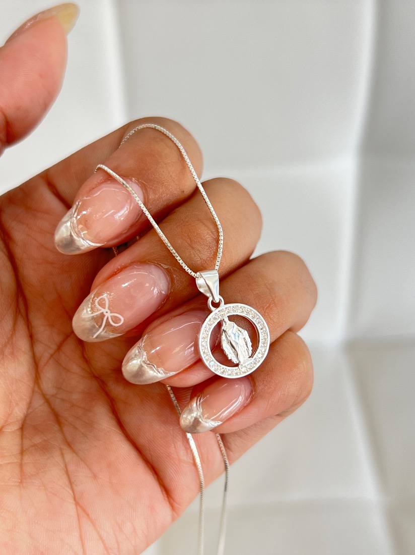 CONJUNTO ROLO CUADRADA DE 4CM C/DIJE VIRGEN DEL MILAGRO PLATA 925