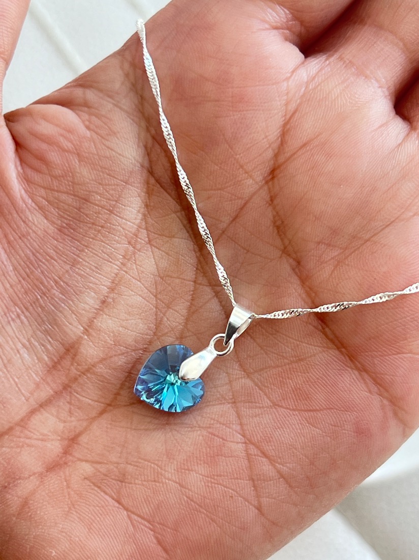 CONJUNTO SWAROVSKI CADENA SINGAPUR DE 45 CM CORAZON VITRAL 10MM TURQUESA B