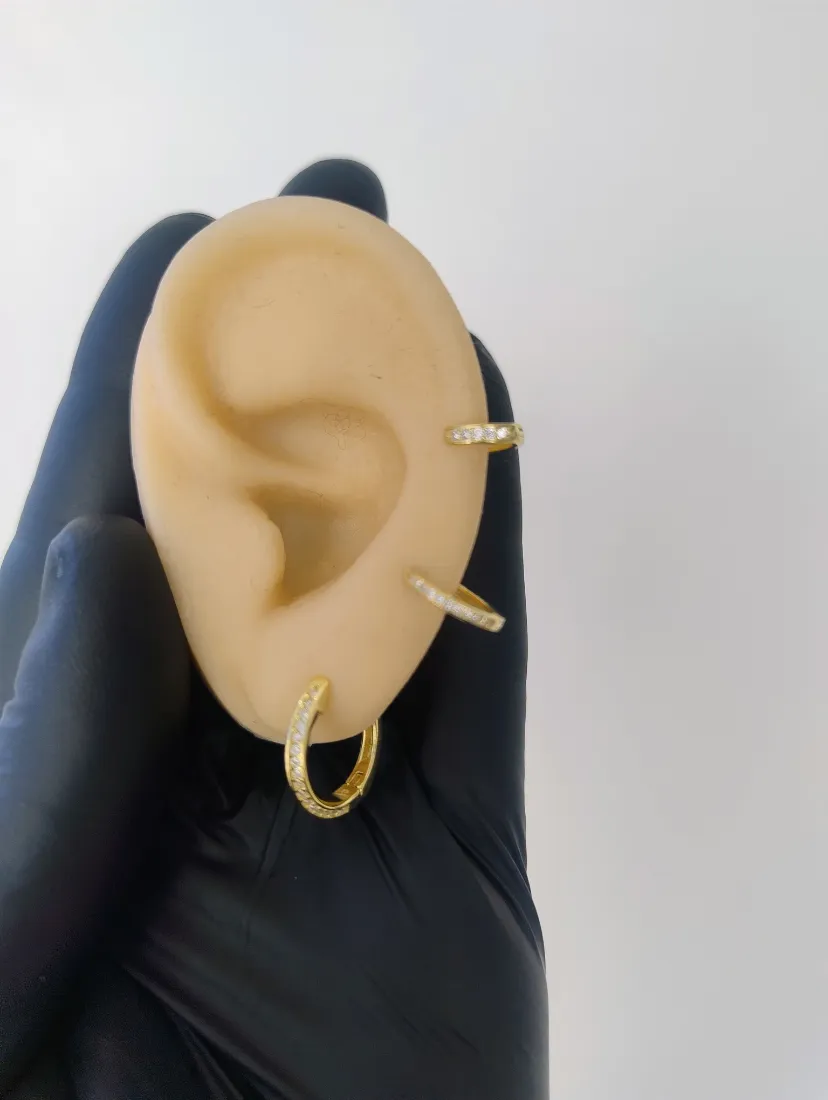 HUGGIES CON ZIRCON PLATA 925 GOLD MED 12MM