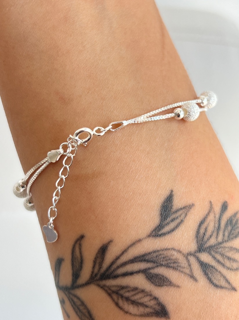 PULSERA ROLO CUADRADA C/BOLOTAS Y ESTRELLAS PLATA 925 ITALY MED 17+3